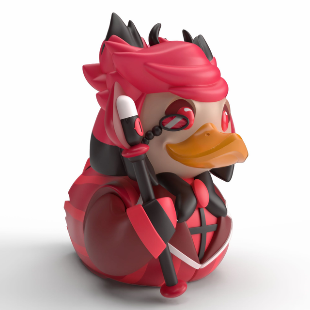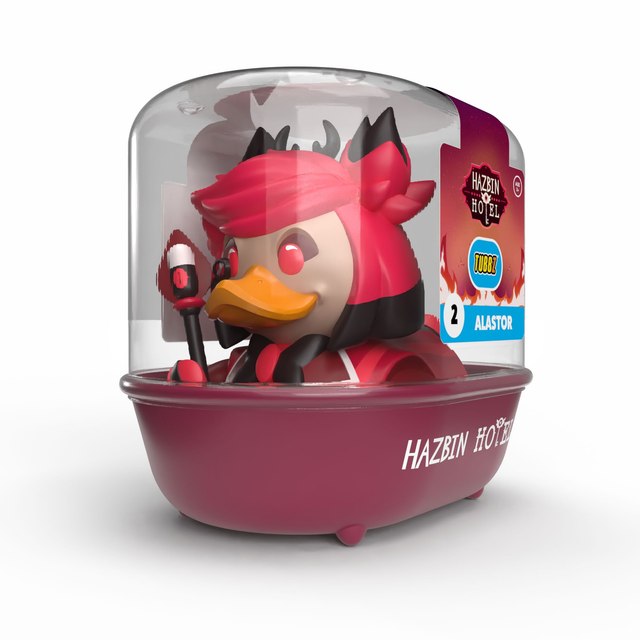 Alastor (The Radio Demon) Static. Smiles. Sinister charm. Alastor crackles to life in vintage fashion, grinning wide and posed like a talk show host with nothing but bad intentions. This collector’s edition duck will haunt your shelf, politely.